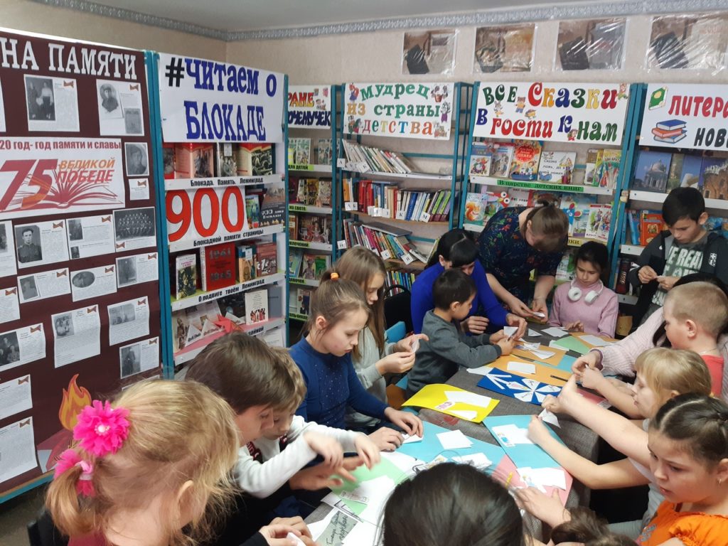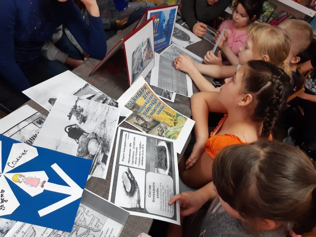 Библиотекарь рассказала о холодных и голодных блокадных днях, о тяжелых испытаниях, выпавших на долю детей Ленинграда. Юным ленинградцам пришлось вместе со взрослыми перенести всю трагедию осажденного города. Дети школьного возраста отстаивали Ленинград вместе со своими отцами, матерями, старшими братьями и сестрами. Ночью наравне со взрослыми дежурили на чердаках и крышах, гасили зажигательные бомбы, сброшенные с самолетов. На заводы и фабрики пришли работать мальчишки и девчонки. Подростки-рабочие работали в невыносимых условиях. Голодные, изможденные, они по 12-14 часов не выходили из промерзших цехов и вносили свой вклад в разгром врага. Над рабочими местами мальчишек и девчонок висели «плакатики», на которых было написано их руками: «Не уйду, пока не выполню норму!».