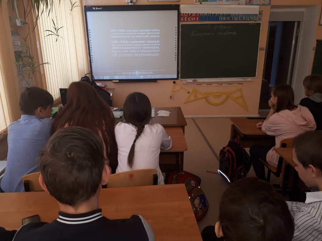 13 февраля 2019 г. в рамках Недели по Правилам Дорожного Движения для 1-4 классов был организован просмотр видеороликов анимационного сериала Смешарики «Азбука Безопасности», а для 5-9 классов проморолики от ОАО «РЖД» «Безопасность на железной дороге»